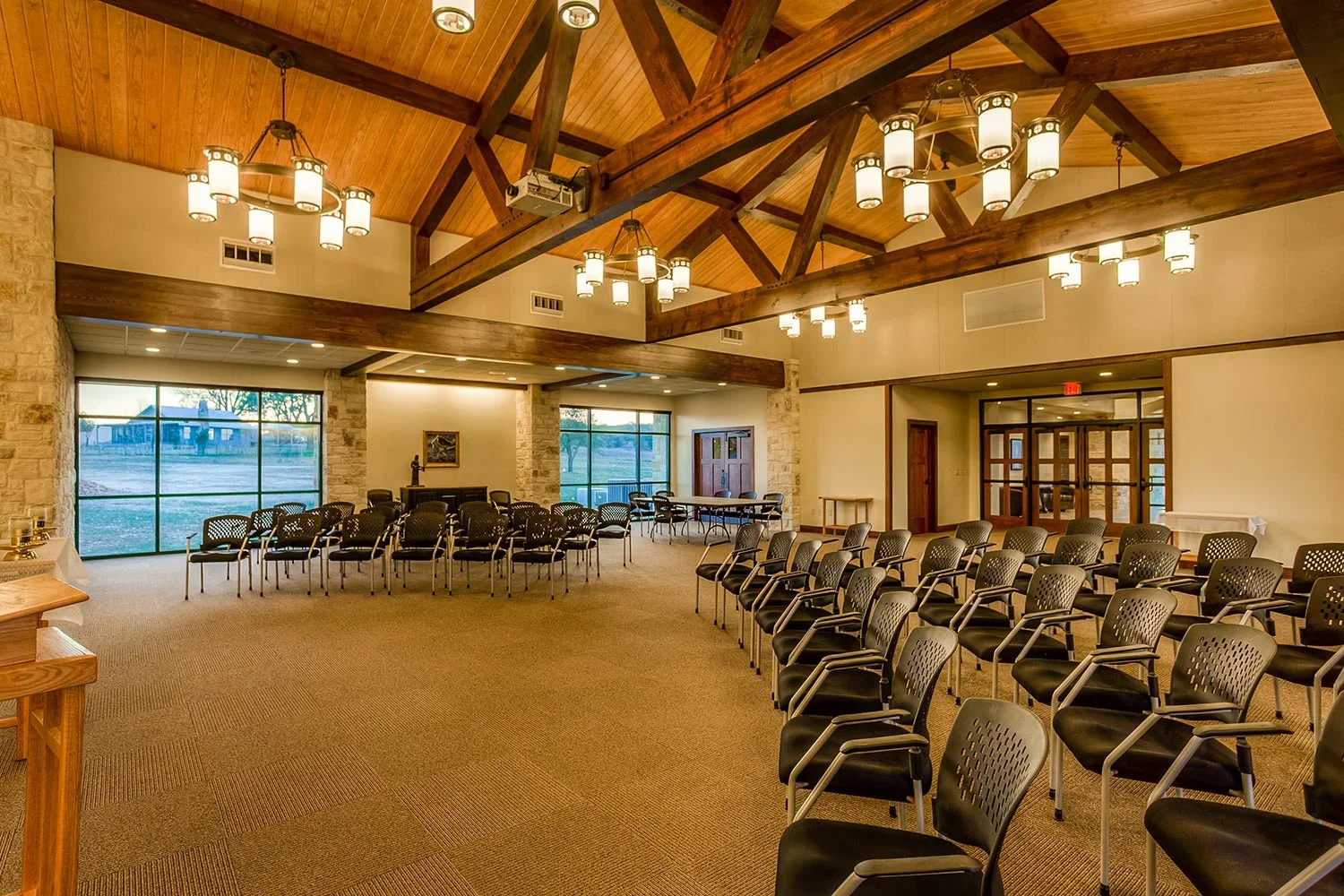The Beverly Marie Pevehouse Conference Center, named for the founding benefactrix of the Catholic Archdiocese of San Antonio, was dedicated in August 2015 for hosting group meetings and day-long retreats. Located in the Conference Center is a library containing over 2000 books, most of them spiritual, theological and formation titles.